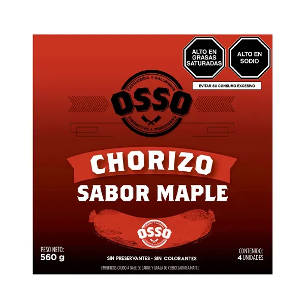 CHORIZO ARTESANAL MIEL DE MAPLE X4 UNID CAJA 560 GR OSSO